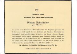 ∞ 3.11.1912 Nikolaus Schnitzler aus Giesendorf; 7 K., davon 4 †; Druck in Düren |