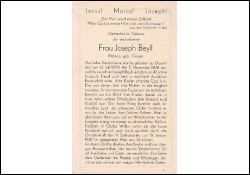 ∞ 5.11.1896 Joseph Beyll, † nach 43 J.; 8 K., davon 3 †; Sohn Robert im 2. Weltkrieg gefallen; |