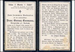 ∞ 24.7.1904 Johann Dahmen, im 1. Weltkrieg 1918 gefallen; ∞ 21.10.1920 Servaz Cremans aus Lich; 2 überlebende Kinder; Druck in Jülich |