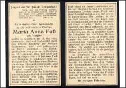 ∞ 18.8.1883 Johann Fuß aus Manheim; 7 K., davon 4 früh †; jahrelanges Leiden; |