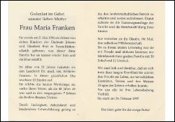 Eltern: Johann u. Elisabeth Pott; ∞ mit 21 J. Dr. med. vet. Wilhelm Franken, † , als sie 48 J. alt war; 10 K.; davon 2 in denletzten Jahren †; sie baute den landwirtschaftlichen Betrieb weiter aus; |