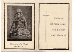 Gefallener 2. Weltkrieg; Tod b. feindl. Fliegerangriff; ∞ 18.9.1920 Maria Klock; 2 K. (Maria, Elisabeth); Druck in Bergheim/Erft |
