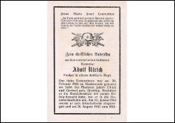 Gefallener 2. Weltkrieg; Eltern: Jakob Ulrich u. Gertrud geb. Gierling; Handelsschule, Beamtenlaufbahn; 13.1.1943 Reichsarbeitsdienst; 26.8.1943Einberufung zum Militär; Ausbildung in Frankreich, hier schwer erkrankt; Friedhof St. Omer-Loguenesse; Druck in Elsdorf |