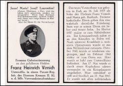 Gefallener 2. Weltkrieg; Eltern: Franz Virnich u. Maria geb. Burbach; Herbst 1937 Einberufung; bei Kriegsausbruch nach Polen; schwer erkrankt, mehrere Operationen, aus Militärdienst entlassen; Okt. 1941 erneut eingezogen, im Febr. 1942 nach Osten; 17.5.1942 durch Kopfschuss verletzt; Ehrenfriedhof Simferopol/Krim; Druck in Beburg/Erft |