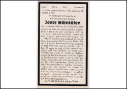 Gefallener 2. Weltkrieg; Eltern: Reiner Schnitzler u. Anna Maria geb. Gierling; ∞ 11.5.1939 Sophie Pulm; 3 K.; 19.6.1942 Einberufung; nach Russland; Druck in Elsdorf |