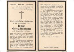 Eltern: Rüdiger Hoffmann u. Clara geb. Lipp; ∞ 21.4.1882 Georg Schumacher, † 10.3.1901; 2 K., davon 1 früh †; schmerzvolle Krankheit |