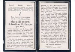 ∞ 11.10.1903 Arnold Hollender aus Esch; 12 K., davon 8 †; zuletzt schweres Leiden |