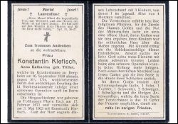Tod nach schwerer Operation; ∞ 3.5.1903 Konstantin Klefisch; 3 K., davon 1 mit 4 Monaten †; schweres inneres Leiden |