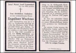 Eltern: Adreas Wachten u. Christine geb. Müller; ∞ 12.5.1940 Sibilla Schwieren aus Esch b. Elsdorf; Okt. 1942 1 Tochter geboren; schweres Nierenleiden; Druck in Bedburg/Erft |