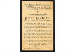 Blutsturz; ∞ 7.1.1877 M. Catharina Breuer; 15 K., davon 8 †; Druck in Bedburg/Erft |