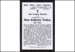 ∞ 2.2.1849 Johann Werner Viethen aus Wollersheim, † 22.3.1871; 10 K., davon 7 †; längere Krankheit; Druck in Zülpich |
