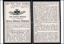 Gefallener 1. Weltkrieg; ∞ 24.6.1904 Margaretha Burbach; seit 10 J. angestellt b. Pfeiffer u. Langen in Elsdorf; 1 Sohn |