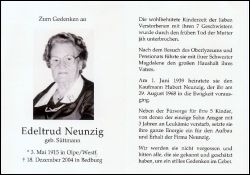 Früher Tod der Mutter; führte mit Schwester Magdalene den Haushalt des Vaters; ∞ 1.6.1939 Kaufmann Hubert Neunzig, † 29.8.1968; 5 K., davon Sohn Ansgar mit 3 J. an Leukämie †; half mit beim Aufbau der Firma Neunzig |