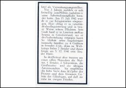 Gefallener 2. Weltkrieg; Messdiener; Lehre auf dem Bürgermeisteramt Bedburg; zuletzt Verwaltungsangestellter; vor 2 J. freiwillig zum Militär; am 15.6.1942 zur Kriegsmarine eingezogen; fand sein grab in Lawrion am Kap Sounia in Griechenland; 2 Brüder sind bereits gefallen, Bruder Hans fiel am 3.12.1941 - insgesamt also 4 Brüder |