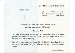 ∞ 1904 Mathilde Winzen, †; Druck in Bedburg/Erft |