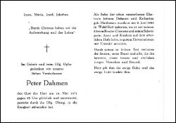 Eltern: Johann Dahmen u. Katharina geb. Mattheisen; bearbeitete in Wehl-Rott mit älterem Bruder Clemens u. Schwägerin Anni den elterl. Hof; verlobt |