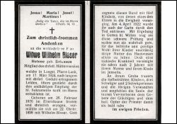 Langes Leiden; ∞ 22.10.1898 Wilhelm Bloser, † 4.4.1922; 5 K., davon 1 † |