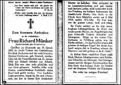 Eltern: Gutsbesitzer Friedrich Denhoven u. Gertrud geb. Steprath; ∞ 22.1.1916 Richard Münker aus Allrath; starb beim Besuch der kranken Mutter in Otzenrath; Todesursache: Lungenentzündung; 1 K. |