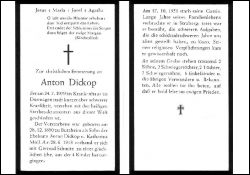 Eltern: Anton Dickop u. Katharina geb. Moll; ∞ 28.6.1913 Gertrud Schmitz, † 17.10.1951; 4 K.; viele Jahre lebte er in Straberg |