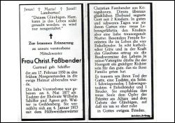 Eltern: Wilhelm Schiffer u. Agnes geb. Welter; ∞ 4.1.1913 Hilfsweichenwärter Christian Faßbender aus Königshoven; 2 K.; Druck in Bedburg/Erft |