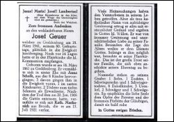 ∞ Anna Schalk, † 20.1.1906; 8 K., davon 1 früh †, 2 als Erwachsene †; ∞ Katharina Merkenich, † 15.7.1921; Druck in Bedburg/Erft |