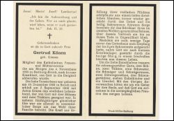 Mitgl. Kath. Frauen- u. Mütterverein; ∞ 7.9.1906 Anton Könen; 5 K.; 1 Sohn im 2. Weltkrieg vermisst; |