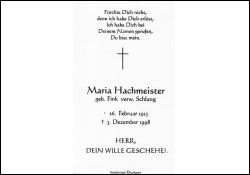 Hachmeister, geb. Fink, verw. Schlang | Vorname: |