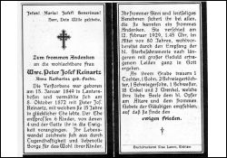 ∞ 8.10.1872 Peter Josef Reinartz, nach 15 J. †; 6 K., davon 4 †; Druck in Mehlem |