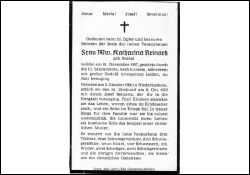 ∞ 8.10.1909 Anton Josef Reinartz, †; 5 K., davon 1 als Kind †, 1 Sohn im 2. Weltkrieg gefallen; ; Druck in Bad Godesberg-Mehlem |