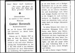 Bundesbahnassistent; Eltern: Paul Hoverath u. Katharina geb. Heinen; ∞ 8.5.1954 Anna Schievenbusch aus Geddenberg; schweres Herzleiden warf ihn aufs Krankenlager |