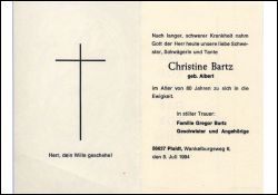 Lange Krankheit; 80 J.; Wohnort: Plaidt