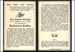Eltern: Peter Becker und Elisabeth geb. Zaun; 1 Bruder (Heinrich), 3 Schwestern (Josefa, Gerta, Grete); Schülerin "Oberlyzeum" Pensionat, Mülhausen (Lehre) |