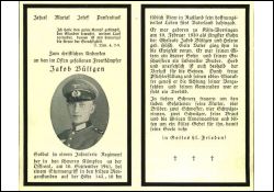 Gefallener 2. Weltkrieg, Eltern: Jakob Büttgen † und Helene geb. Hüsch, 4 Brüder, 2 Schwestern; (jüngster Sohn); verlobt |