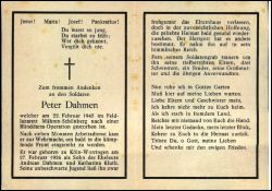 Eltern: Andreas Dahmen und Katharina geb. Kluth; Soldat, verstarb nach Blinddarm OP |