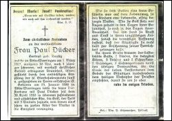 ∞ 30.4.1910 Paul Dücker, 5 Kinder davon 1 jung †; 4jährige schwere Krankheit |