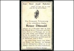 Eltern: Reiner Dünwald † und Christine geb. Detmer, 4 Brüder, 1 Schwester; "fiel einem Unglück zum Opfer, verstarb im Krankenhaus" |