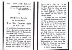 ∞ 31.8.1892 Hermann Esser † 7.3.1917, 6 Söhne, 2 Töchter , davon 1 Sohn Joseph Gefallener 1. Weltkrieg † 8.12.1916, 1 Tochter mit 15 J. † |