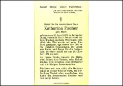 ∞ 7.1.1899 Peter Fischer, Worringen; 10 Kinder, davon 5 †; 2 Söhne, 3 Töchter |