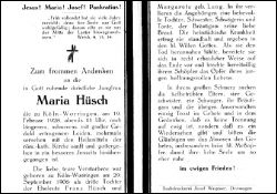 Dritte Tocher der Eltern: Franz Hüsch und Margarete geb. Lang; 4 Geschwister; verlobt; "heimtückische Krankheit" |