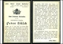 Gefallener 1. Weltkrieg; Eltern: C(K)aspar Hüsch und Katharina geb. Dappen, 4 Brüder, 2 Schwestern; Kaufmannsausbildung |