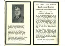 Gefallener 2. Weltkrieg; 22 Jahre; Eltern: Vater †, Mutter; 2 Schwestern |