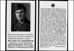 Eltern: Peter Jos. Dahmen u. Katharina geb. Vossen; am 22.12.1942 verwundet; nach Genesung erneut auf das heiße Kampffeld im Osten; Tod durch Artillerietreffer |