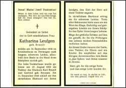 Eltern: Karl Brandt und Gertrud geb. Brausen; ∞ 11.12.1948 Anton Leufgen; 1 Tochter; 1 Bruder; schweres Leiden |