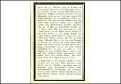 ∞ 1940 Gertrud Schmitz †(verst. bei/durch Geburt Tochter), 1 Tochter Marlene; Vater †, 3 Brüder; Totenzettel Worringen |