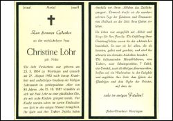 ∞ 15.10.1887 Paul Löhr † (haben Goldene Hochzeit erlebt), 6 Kinder, davon 1 jung † und 1 Tochter Sybilla †; 1 Tochter verblieben |