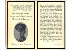 Gefallener 2. Weltkrieg; Eltern: Peter Oberzier und Gertrud geb. Herriger; 1 Bruder Peter, 1 Schwester |