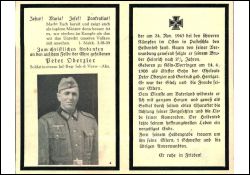 Gefallener 2. Weltkrieg; Eltern: Peter Oberzier und Gertrud geb. Herriger; 1 Bruder Heinrich † 30.6.1941 , 1 Schwester |