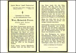 ∞ 1917 Heinrich Peters (Worringen) † 1950; 2 Söhne, davon 1 Sohn † 1944; Hebamme |