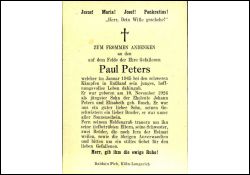 Gefallener 2. Weltkrieg; Eltern: Johann Peters und Elisabeth geb. Busch, 2 Brüder, 1 Schwester |