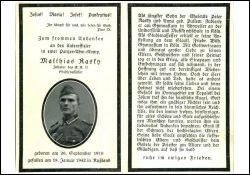 Gefallener 2. Weltkrieg, Eltern: Peter Rasky und Anna geb. Pullem; St.-Tönis-Str. 22; Geschwister; Studienassessor Friedrich-Wilh.-Gymnasium, Köln; Sportlehrer bei Fa. Knapsack |